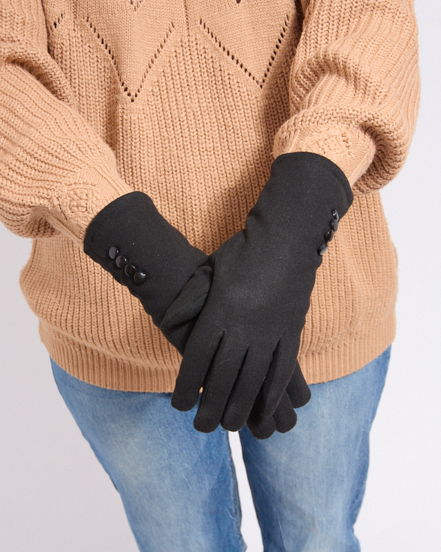 - Stilīgi sieviešu cimdi no auduma. Pāris ir izgatavots ar mīkstu kažoku ieliktni. Ideāla bāze daudziem rudens-ziemas tērpiem!