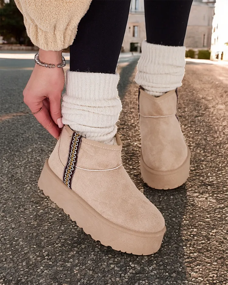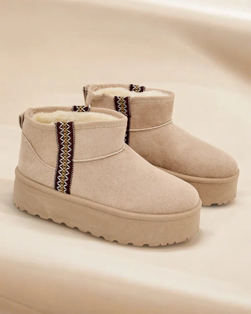 - Lieliski sieviešu ziemas sniega zābaki uz platformas. Augšdaļa ir izgatavota no ķīmiskās zīda ādas, iekšpusē izklāts ar mākslīgo ādas imitāciju. Ideāla bāze ziemai!
