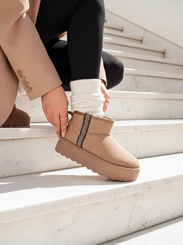 - Lieliski sieviešu ziemas sniega zābaki uz platformas. Augšdaļa izgatavota no antīla sintētiskās ādas, iekšpusē izklāta ar kažokādu. Ideāla bāze ziemai!