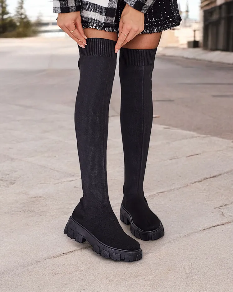 • Stilīgi sieviešu platformas zābaki. Augšējā daļa izgatavota no elastīgas auduma materiāla, ar auduma iekšējo zolei. Pārvelcama modeļa. Ideāli piemērots ikdienas rudens tērpiem!