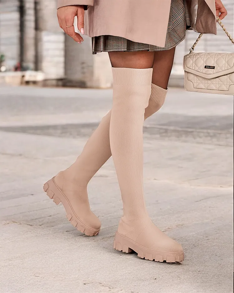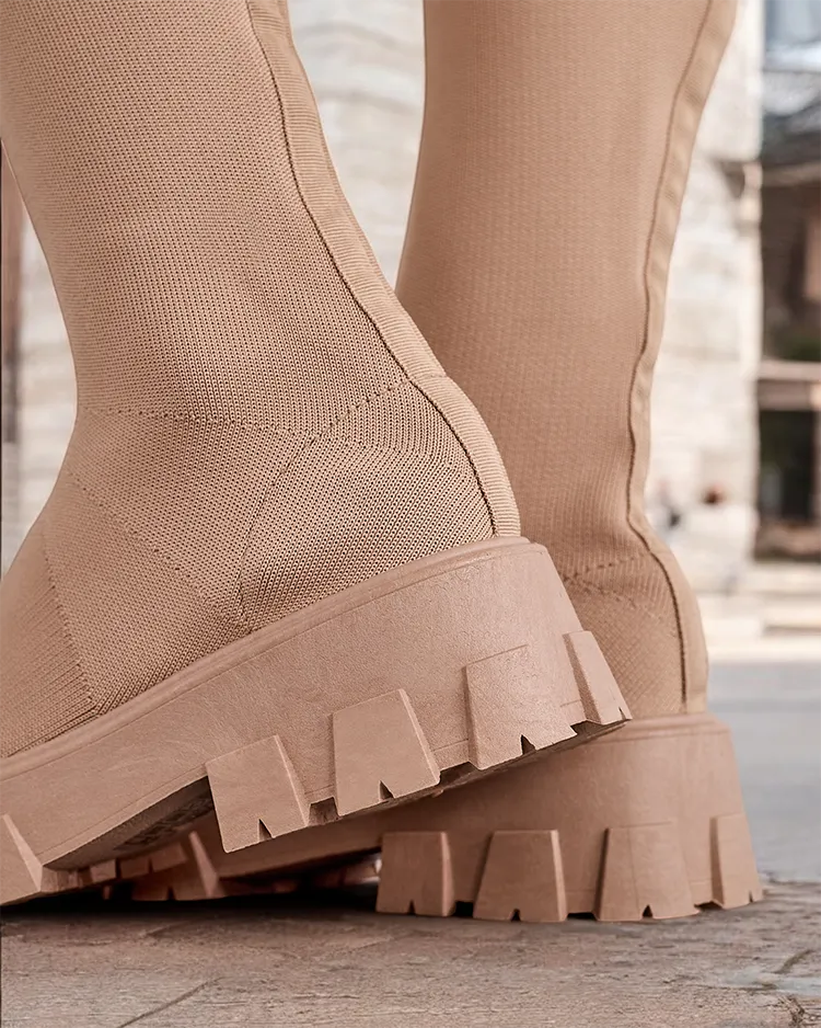 - Stilīgi sieviešu platformas zābaki. Augšējā daļa izgatavota no elastīgas auduma materiāla, ar auduma iekšējo zolei. Pārvelcama modeļa. Ideāli piemērots ikdienas rudens tērpiem!