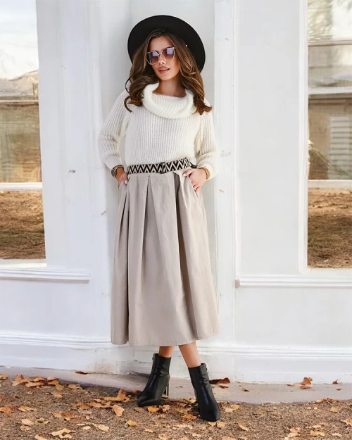 - Sieviešu vidējā garuma svārki, izgatavoti no mīksta audekla, kas atgādina velveta materiālu. Modelei pievienots jostas siksniņš. Ideāla bāze daudziem unikāliem tērpiem! PIEZĪME: Mērījumu precizitāte (+/-) 1 cm.
