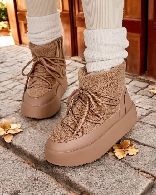 • Sieviešu sniega zābaki ar kātiņu, kas izgatavots no eco-ādas un patīkama materiāla kombinācijas. Iekšpusē ir ērta kažoka izšuvums, zābakiem ir rāvējslēdzējs un šnēbānda kātiņa. Ideāli piemēroti ziemai!