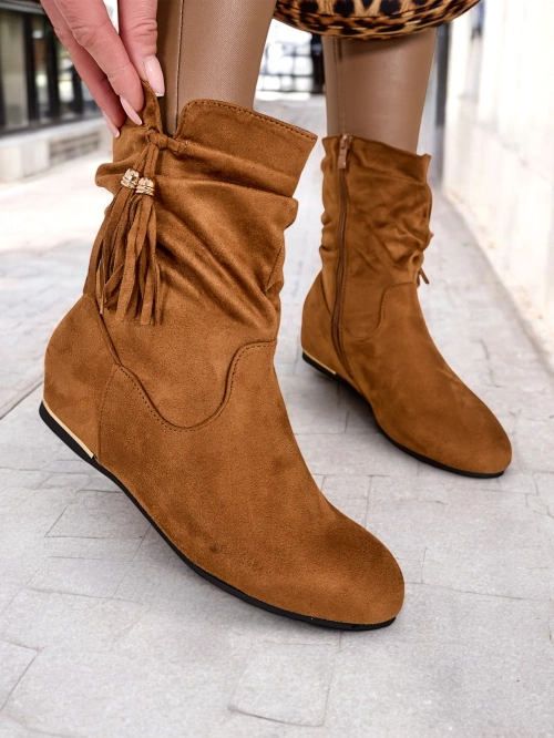 • Stilīgi ķermeņa zābaki no ekoloģiskās audekļa ādas. Apaviem iekšā ir slēpta kilna. Modele tiek nostiprināts ar trepes rāvēju sānos. Kātiņa augstumā tie ir ar dekoratīvu frīžu. Ideāli piemēroti daudzām sievišķīgām stilizācijām.