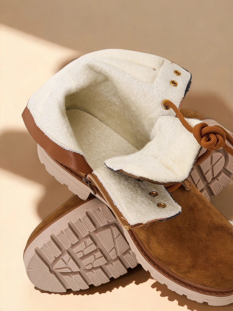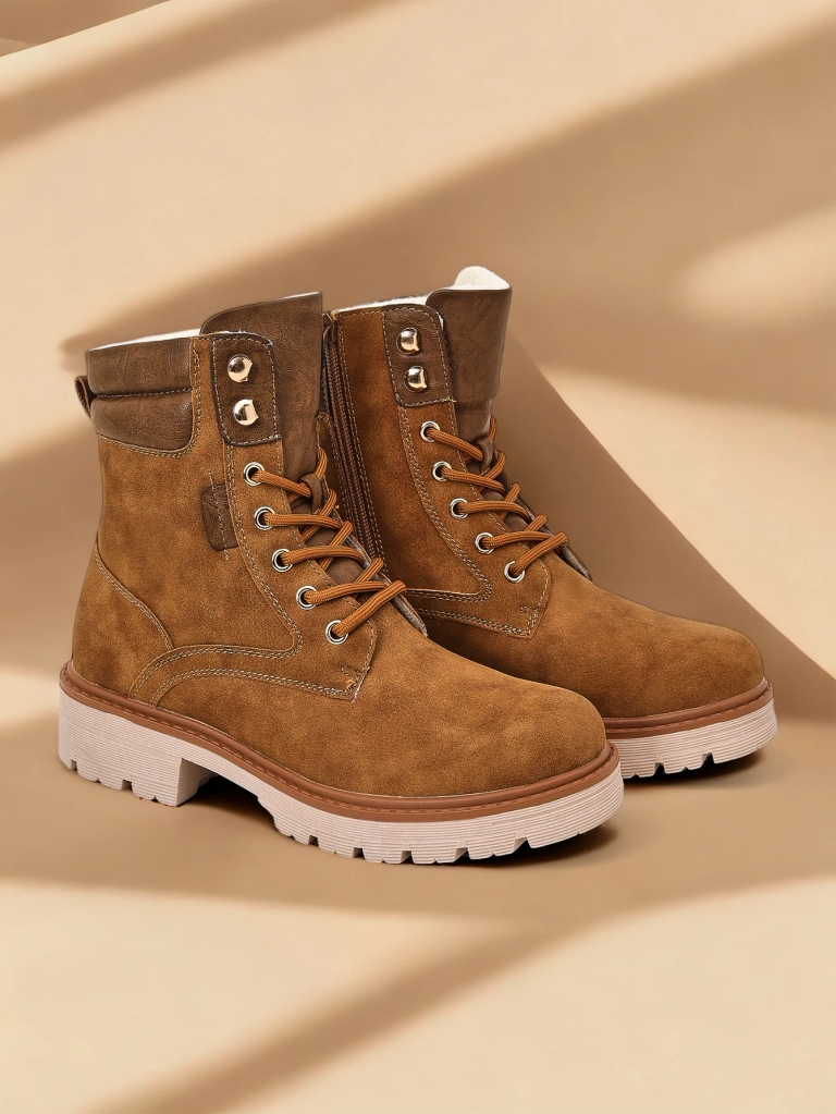• Sieviešu darbinieku tipa zābaki ir unikālas kurpes, kas apvieno stilu un komfortu. Izgatavots no sintētiskās ādas un piepildīts ar mīkstu kažoku. Šis modelis ir ar aizdari un ar rāvēja rāvi.
