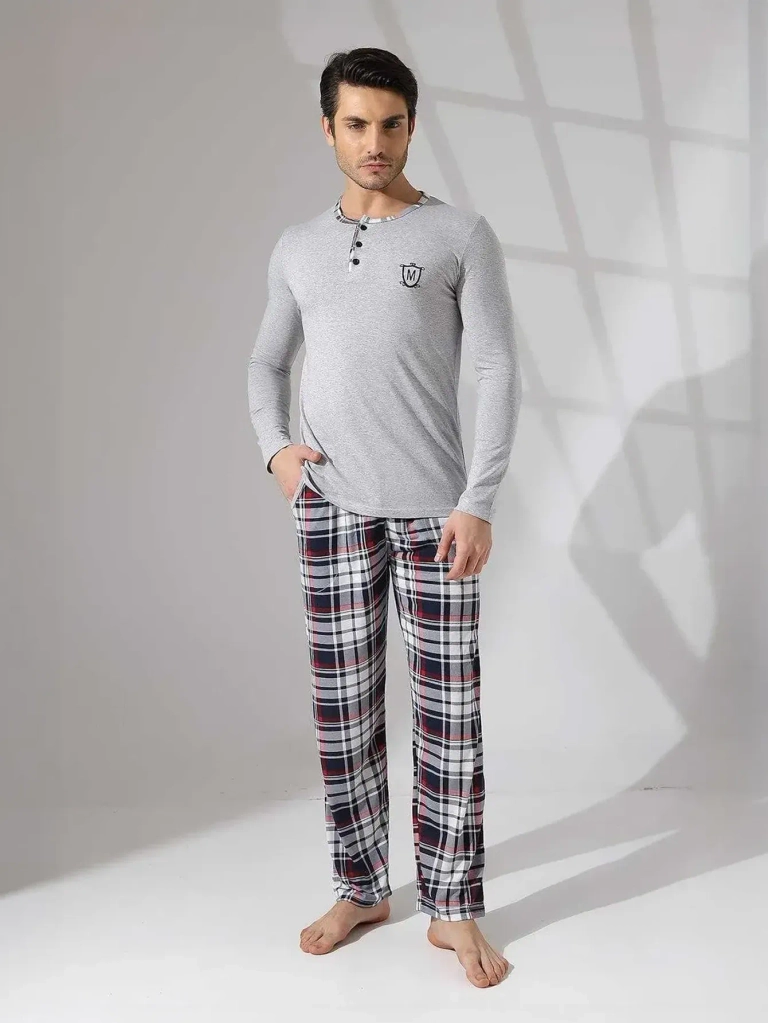 - Eleganti vīriešu pidžami ar unikālu apdruku un rūtains bikses. Izgatavots no augstas kvalitātes kokvilnas, nodrošinot ērtu miegu un stilīgu izskatu. UZMANĪBU: Mērījumu precizitāte (+/-) 1 cm.