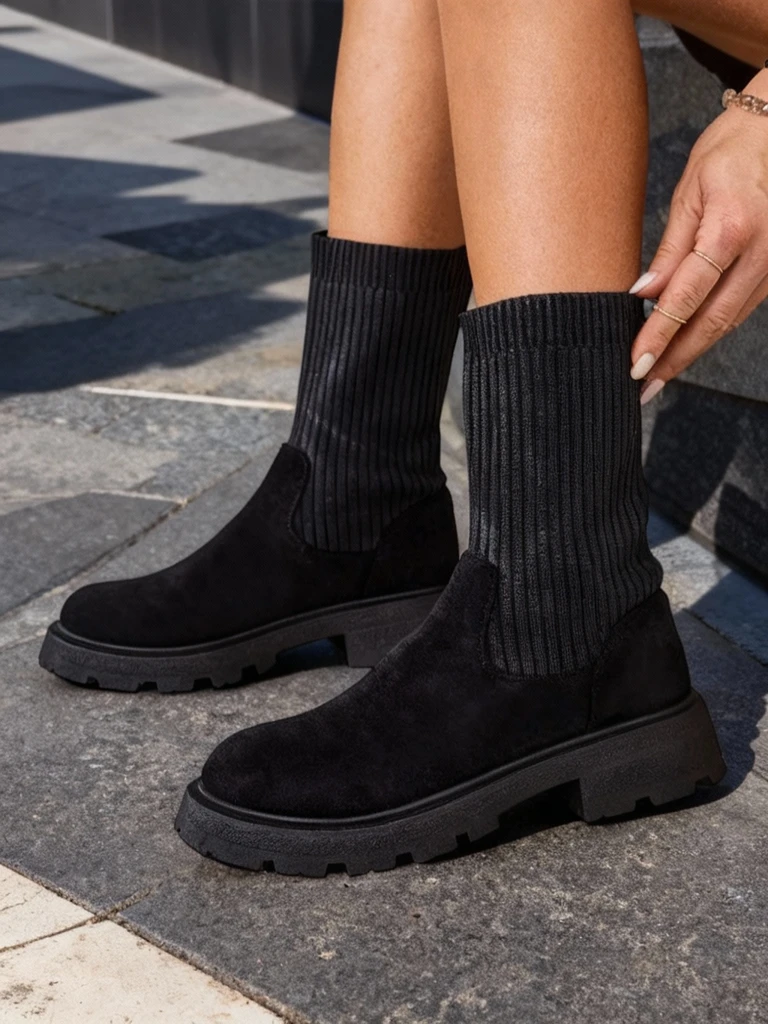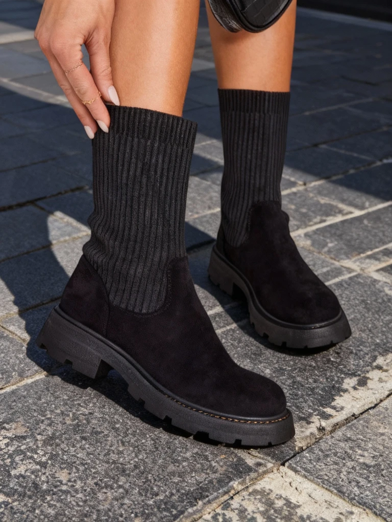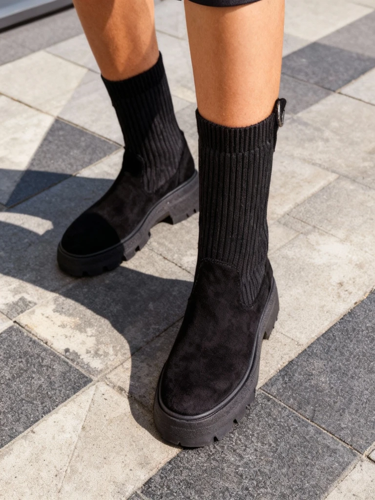 - Fantastiski sieviešu plakanas papēža iedurkņu zābaki, izgatavoti no dārzveida ekoloģiskā auduma un auduma. Auduma iekšpusē nodrošina komfortu un siltumu pat aukstos laikos. Elastīgie ieliktnes abās pusēs nodrošina perfektu piegāzi!