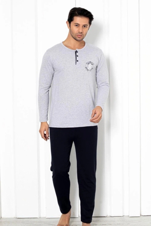- Brīnišķīga vīriešu pidžama, izgatavota no kokvilnas auduma. Modelis ir ar garām piedurknēm un taisnām biksēm. Komforts un elegance vienā!