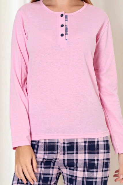 - Sieviešu 2-daļu pizāma ar garām piedurām un garām biksēm, izgatavota no kokvilnas materiāla. Modele rotāta ar rakstu. Ideāli piemērota mājas vakariem! UZMANĪBU: Mērīšanas precizitāte (+/-) 1 cm.