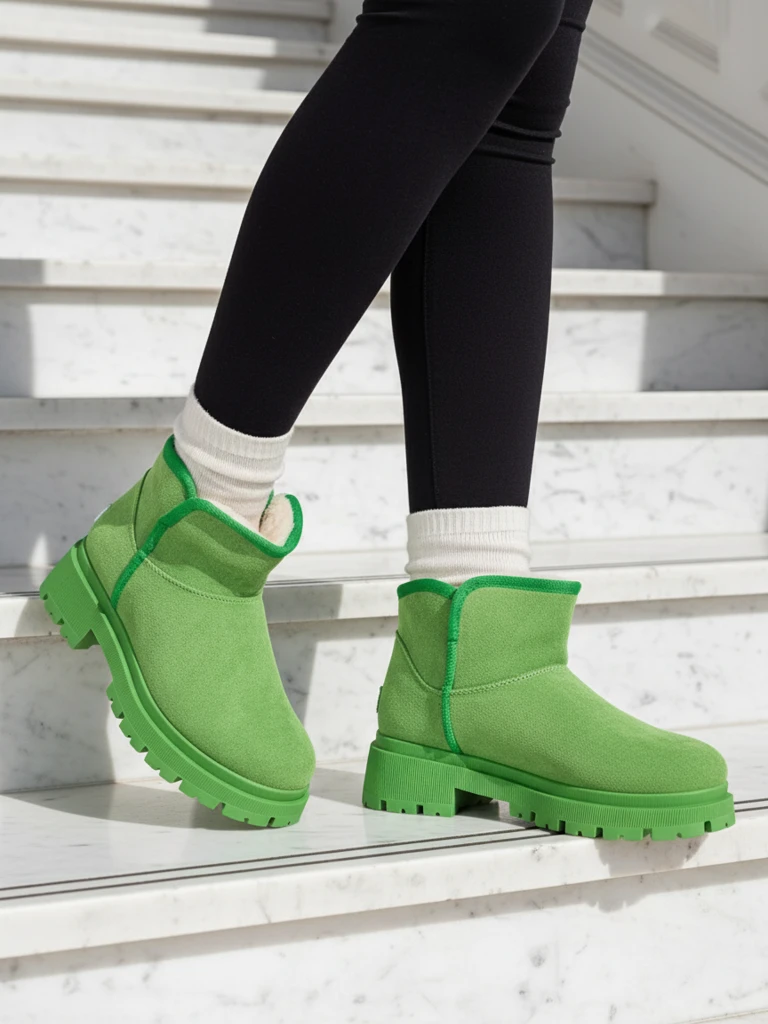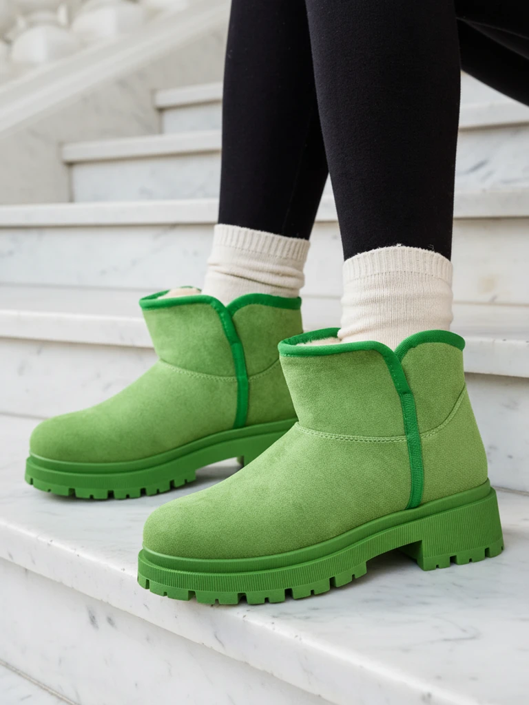- Lieliski sieviešu ziemas sniega zābaki uz plakana zole. Augšdaļa izgatavota no mākslīgās zamšādas, bet iekšpuse ir oderēta ar vilnu siltumam. Ideāla bāze ziemai!