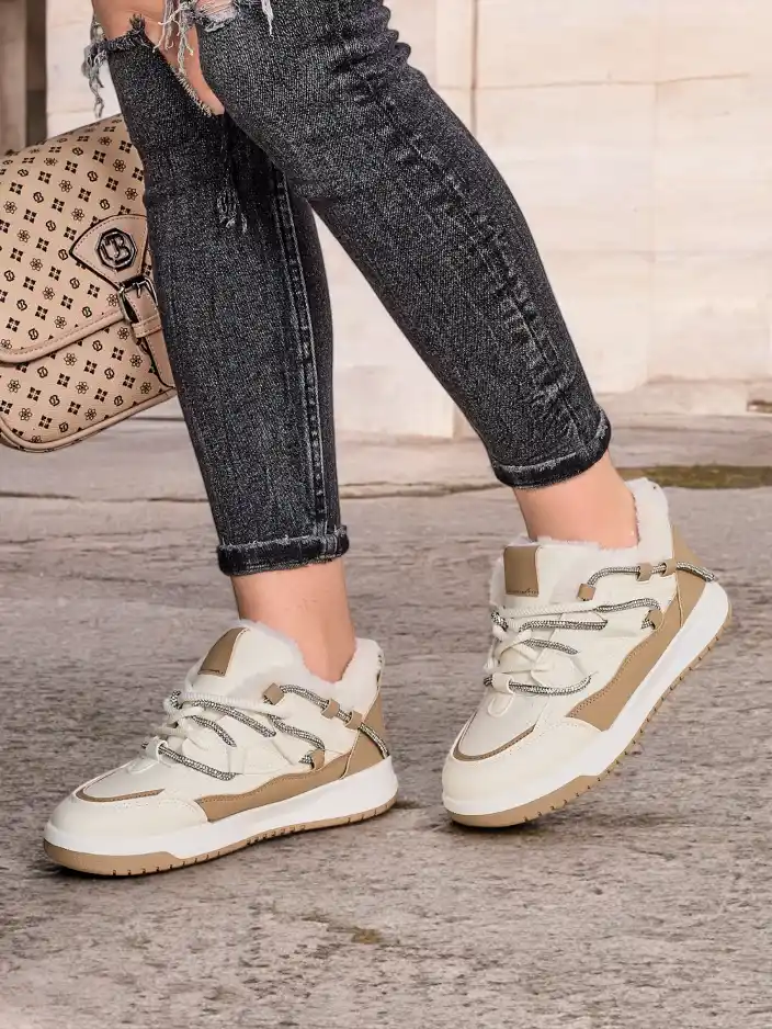 - Sieviešu siltinātas sporta kurpes, kedu tipa, ar plakanu zoli. Modelis ir izgatavots no eko ādas. Auklu augšdaļai ir fliteru rotājums. Iekšpusē ir mīksta kažokāda. Lielisks papildinājums tavam ziemas ikdienas apģērbam!