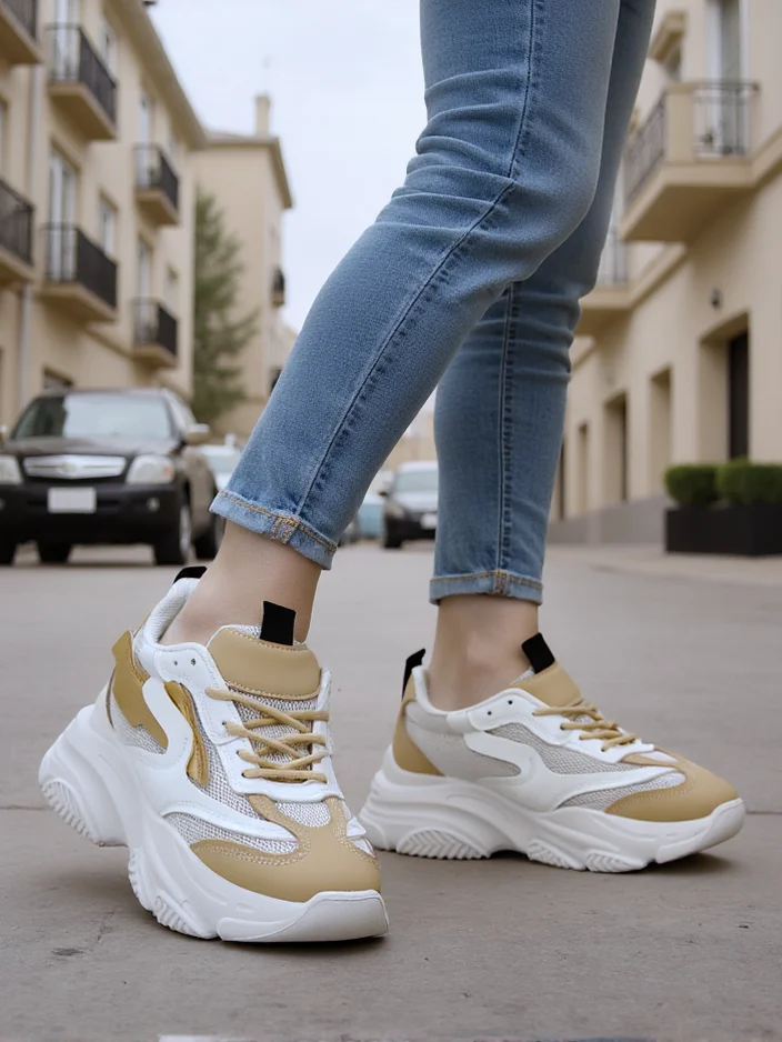 - Sieviešu sporta apavi sneaker stila uz platformas. Izgatavoti no eko ādas un auduma. Lielisks papildinājums jūsu ikdienas ikdienas tērpiem!