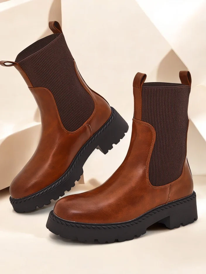 - Augsti sieviešu potītēm domāti zābaki, izgatavoti no ekoloģiskas ādas. Slip-on modelis ar maigu izolāciju iekšpusē. Papildus ir elastīga ieliktne sānos un augšā uz zābaku kājas. Ideāli rudenim!