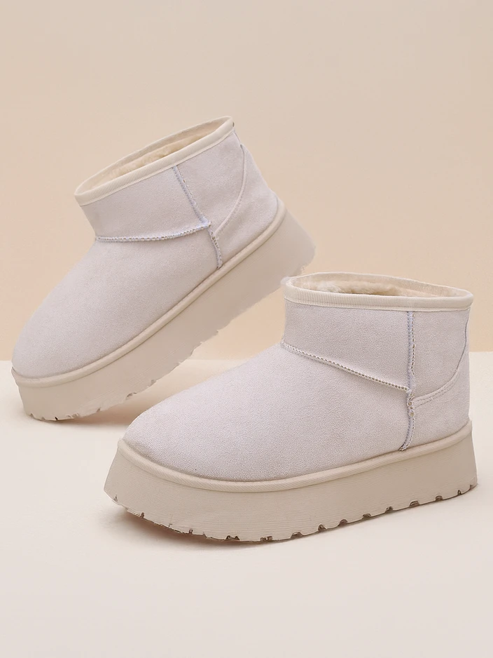- Lieliski sieviešu ziemas sniega zābaki ar platformu. Augšējā daļa izgatavota no mākslīgā zamša, un iekšpuse ir izolēta ar kažokādu. Ideāla bāze ziemai!