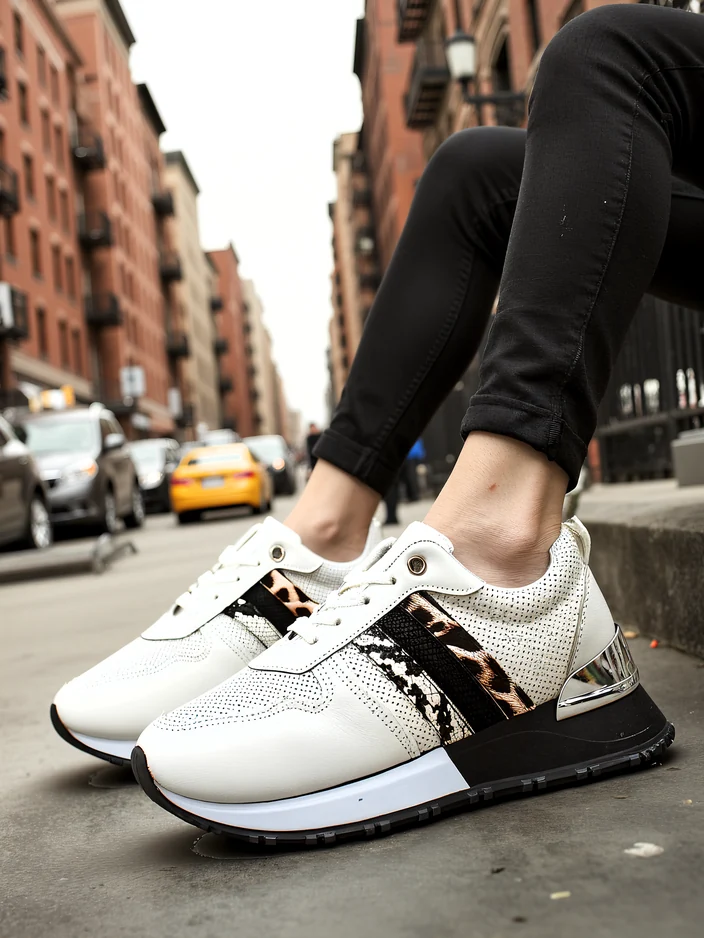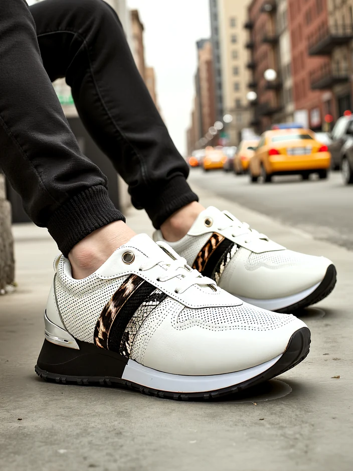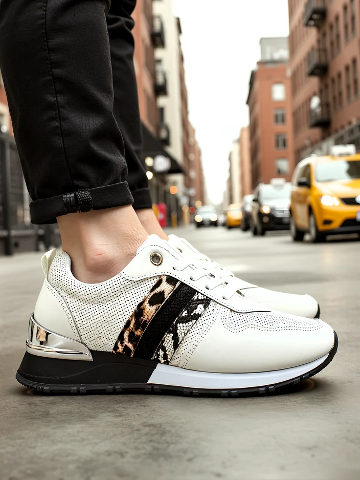- Mega stilīgi sieviešu sporta apavi ikdienas stilā. Apavu augšdaļa izgatavota no ekomākslīgās ādas, rotāta ar drukātiem ieliktņiem. Iekšpuse apdarināta ar auduma materiālu. Ideāla bāze daudziem ikdienas tēliem!