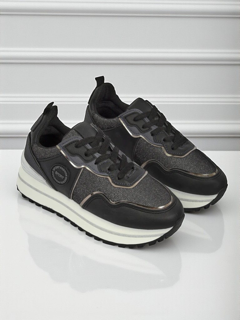 - Lavvia sportskoe butia tipa sneakersia na grubszei podesevie. Sdelane iz kozhi ekologichneskoi i materiala brokatovogo, a takzhe tkanevoi vkladki. Super dobavlenie k tvoim ezhednevnym outfitam v stile casual!