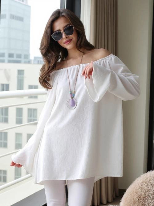 Royalfashion Sieviešu blūze bez plecu izgriezuma ar volāniem