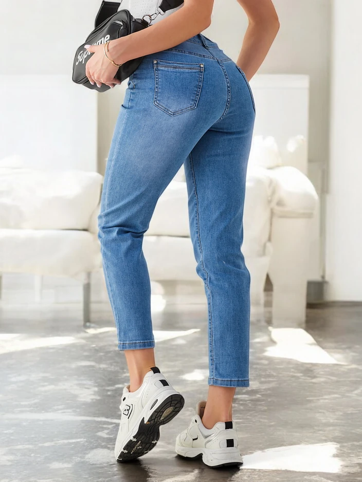 Royalfashion Sieviešu kokvilnas mammas džinsi