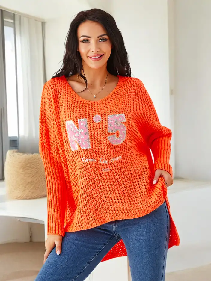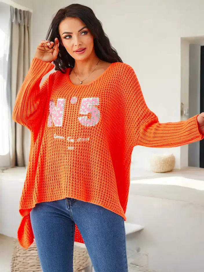 • Sieviešu akrila džemperis ar rakstiem ir stilīgs un ērts risinājums vēsākām dienām. Mīkstā adīta materiāla nodrošina siltumu, savukārt stilīgie raksti piešķir raksturu un mūsdienīgu izskatu. Ideāli piemērots ikdienas apģērbam, apvienojot komfortu ar moder