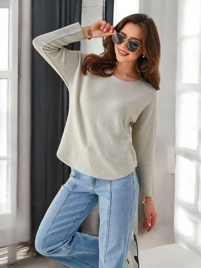 - Sieviešu džemperis, kas izgatavots no viegla viskozes auduma. Tam ir garas piedurknes un apaļa kakla izgriezums, nodrošinot komfortu un eleganci ikdienas apģērbā. Pieejams dažādās krāsās, tas ļauj viegli saskaņot ar jebkuru garderobi!
