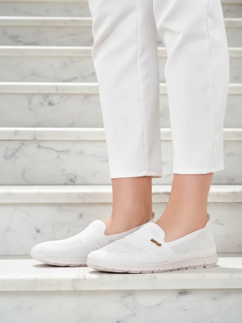 - Sportowe damskie mokasyny na płaskiej podeszwie. Klasyczny model wykonany z tkaniny. Idealna baza na co dzień!