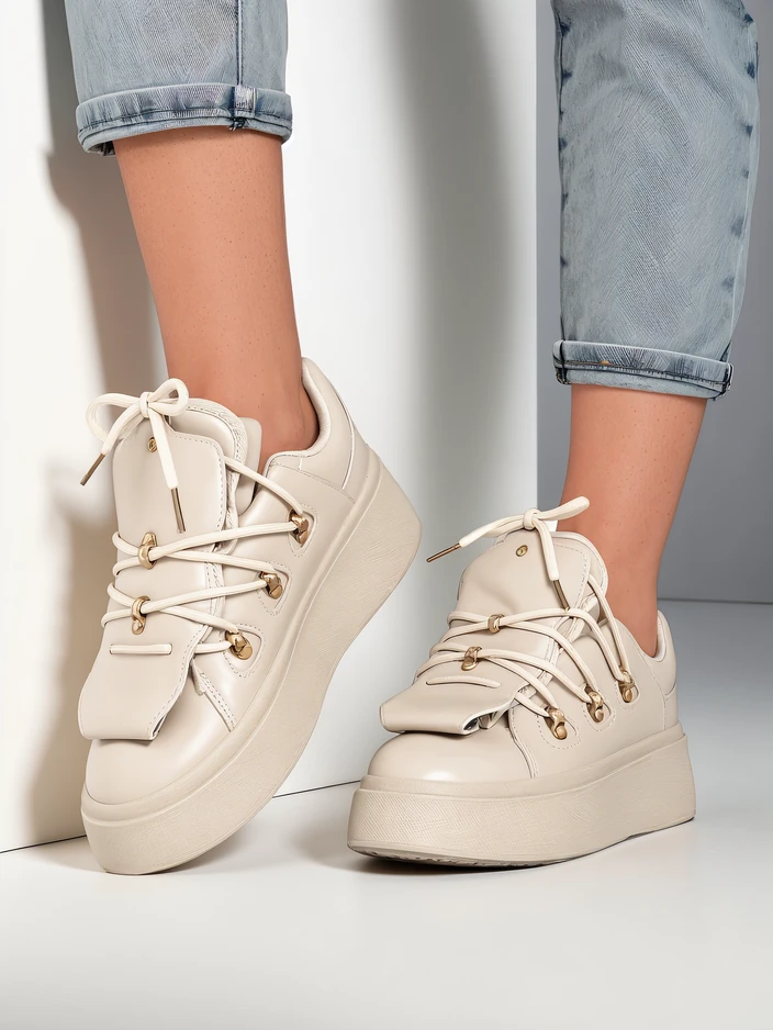 - Sporta sieviešu apavi uz biezāka zoles. Šņorējama virsma no ekoloģiskas ādas. Iekšpuse izgatavota no patīkama auduma. Modelim ir dekoratīva mēle. Ideāli ikdienas lietošanai!