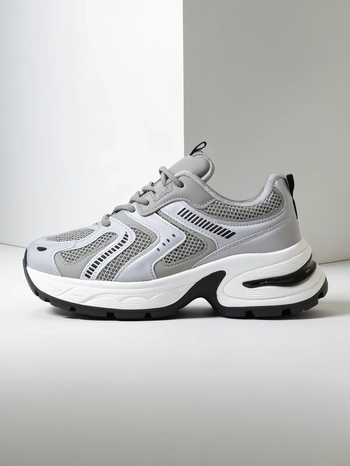 Aurelia Luna to damskie sneakersy marki Royalfashion, stworzone z myślą o aktywnych kobietach ceniących modę i wygodę. Ich cholewka wykonana jest z wysokiej jakości skóry ekologicznej, elastycznej tkaniny oraz przewiewnej siateczki, co zapewnia znakomitą wentylację i zapobiega nadmiernemu poceniu się stóp nawet podczas całodziennych spacerów. Materiały te są wybierane pod kątem trwałości oraz komfortu użytkowania, a użyty proces produkcji dba o precyzyjne wykończenie każdego detalu.Wkładka oraz wyściółka z miękkiej tkaniny gwarantują doskonałe dopasowanie oraz wygodę na każdym kroku, a płaski obcas i profilowana, amortyzująca podeszwa o wysokości 5 cm gwarantują idealną równowagę między wygodą a nowoczesnym designem. Buty są lekkie (waga z opakowaniem ok. 0,4 kg), co czyni je idealnym wyborem na co dzień.Kluczowe korzyści tych sneakersów to wygoda użytkowania oraz uniwersalny styl. Minimalistyczna kolorystyka – gołębi szary z nutą ecru – sprawia, że obuwie łatwo dopasować zarówno do sportowego, jak i casualowego looku.1. Połącz z legginsami i długim oversize’owym swetrem, by stworzyć luźny, casualowy zestaw na spacer lub zakupy.2. Załóż do jeansów typu mom fit i klasycznego T-shirtu – uzyskasz stylizację idealną do pracy lub na uczelnię.3. Sneakersy Aurelia Luna świetnie sprawdzą się także w zestawieniu z letnią sukienką midi i jeansową kurtką, dodając stylizacji sportowego sznytu. Aby zachować świeżość i ładny wygląd butów, czyść je regularnie wilgotną szmatką z dodatkiem łagodnego środka czyszczącego. Unikaj moczenia i suszenia na słońcu. Po sezonie schowaj je w suchym, przewiewnym miejscu, najlepiej w oryginalnym opakowaniu. Sneakersy na masywnej podeszwie to zdecydowany hit ostatnich sezonów i doskonale wpisują się w trend athleisure. Uniwersalne odcienie szarości i ecru pozwolą Ci z łatwością komponować je z różnymi stylizacjami, zgodnie z aktualnymi trendami mody miejskiej.