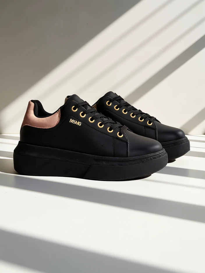 Le sneakers Callista di Royalfashion sono una proposta eccezionale per le donne che apprezzano il comfort e lo stile sobrio. Realizzate in pelle ecologica di alta qualità, si distinguono per la finitura estetica e la durata. Grazie al processo di produzione basato su un rigoroso controllo di qualità e tecnologie rispettose dell'ambiente, queste scarpe non solo hanno un aspetto eccellente, ma dureranno anche per molte stagioni. La soletta in tessuto traspirante e il tessuto esterno assicurano una sensazione di freschezza e comfort per tutto il giorno.La caratteristica distintiva del modello Callista è la suola piatta e solida con un'altezza di 4,5 cm, che garantisce stabilità e un elevato comfort, anche durante lunghe passeggiate o una giornata attiva. La punta rotonda e l'allacciatura classica fanno sì che le sneakers si adattino bene al piede, adattandosi alla sua forma. L'assenza di decorazioni e il colore nero uniforme con un tallone a contrasto sono una base ideale per molti stili.Le scarpe si adattano perfettamente alle tendenze attuali: il design minimalista, la suola alta e la versatilità le rendono un must-have per la primavera, l'estate e l'autunno. Stilisticamente, puoi combinarle in vari modi:1. Look casual: abbina le sneakers a jeans skinny chiari e una semplice T-shirt per un outfit comodo per tutti i giorni.2. Streetwear: abbina una minigonna o una gonna midi e una giacca oversize, enfatizzando l'eleganza urbana.3. Eleganza sportiva: indossale con leggings e una felpa con cappuccio, perfette per passeggiate o shopping nel fine settimana.La cura delle sneakers Callista è molto semplice: basta pulirle con un panno umido con un detergente delicato e asciugarle lontano da fonti di calore. Si consiglia inoltre di utilizzare prodotti per la cura della pelle ecologica per mantenerne la freschezza e l'elasticità del materiale.Questo modello si adatta alle attuali tendenze della moda urbana, dove dominano scarpe comode e distintive con plateau, che enfatizzano efficacemente lo stile individuale e aggiungono sicurezza a ogni outfit. Le sneakers Callista Royalfashion sono una scelta eccellente per le donne attive che apprezzano la classica moderna.