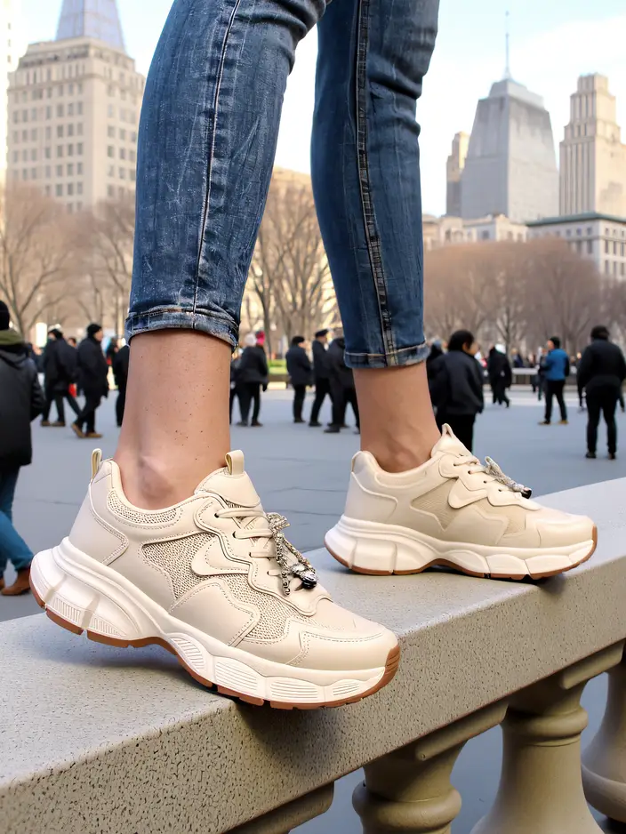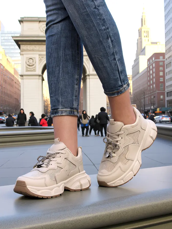 - Sieviešu sporta apavi, izgatavoti no ekoloģiskas ādas un acu auduma. Modelis uz biezākas zoles. Ar auklām. Tie lieliski papildinās ikdienas apģērbus! Apdarināti ar noņemamu ķēdi.