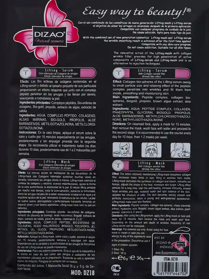 DIZAO - Seruma un maskas komplekts ar kolagēnu 6g + 36g x 10 gab.