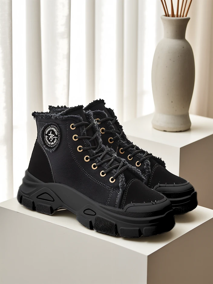 - Augstas sporta sieviešu čības, kas izgatavotas no tekstilmateriāla. Modelis uz ērtas zoles. Augšdaļa ir ar auklām. Lieliski piemērotas ikdienas apģērbu izveidei!