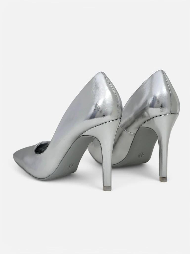 Cechą wyróżniającą te buty jest ich wyjątkowy design, z charakterystycznym obcasem shpilkowym o wysokości 10,5 cm, który dodaje elegancji każdej stylizacji. Dzięki uniwersalnemu kolorowi srebrnemu, te buty łatwo dopasujesz do różnorodnych ubrań.
