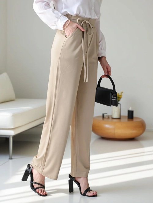 Royalfashion Plašas dāmu bikses ar sānu saitēm