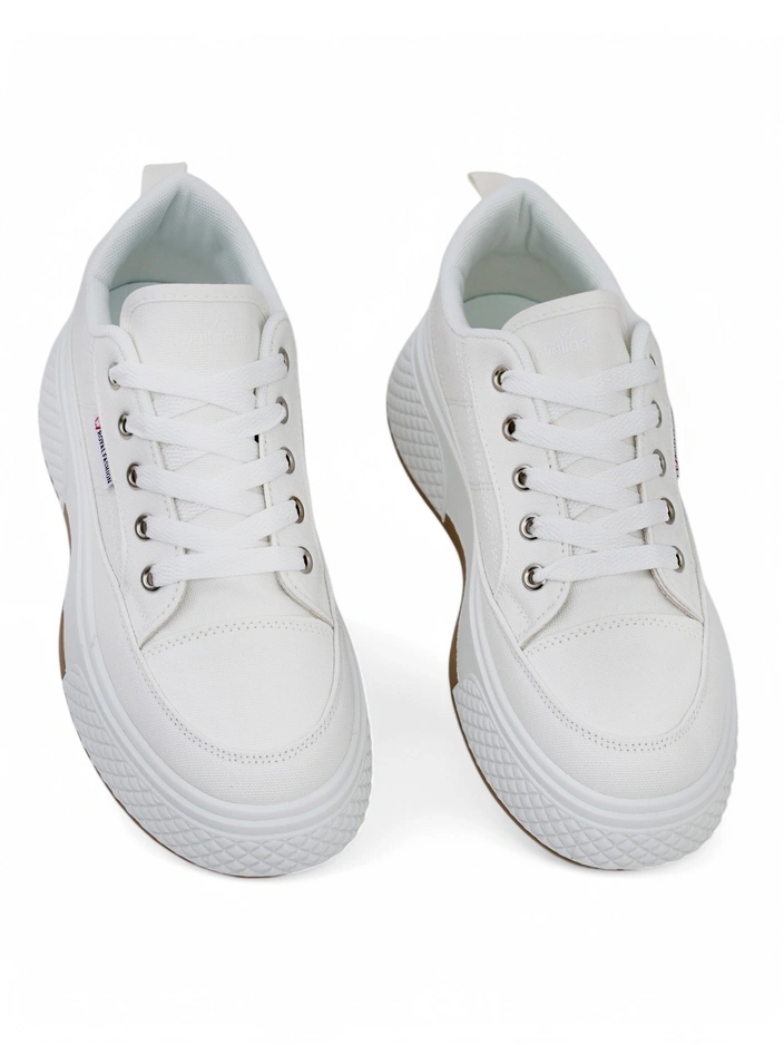 Damskie trampki platformowe Calypso białe tkaninowe na wiosnę i lato