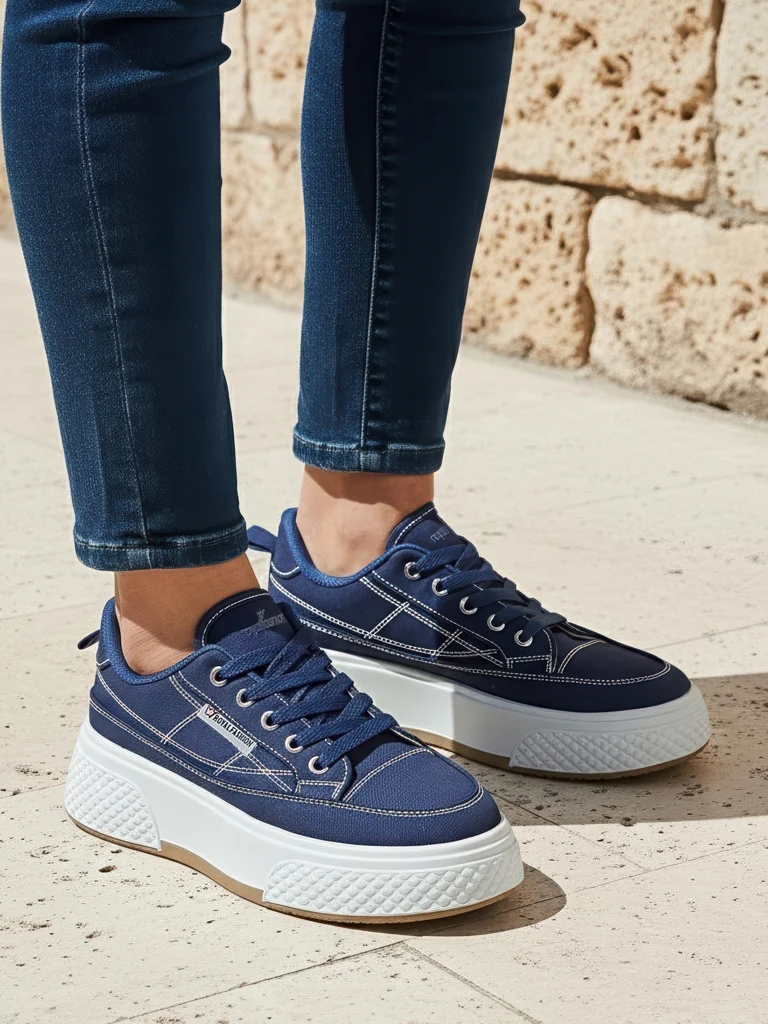 Damskie sneakersy Callista na platformie granatowe tkanina wiosna-lato