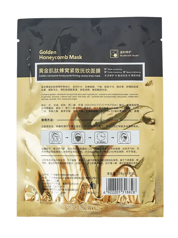 - Zelta lapu maska ar šūnu struktūru mitrina, baro un regenerē ādu, atstājot to gludu, mirdzošu un pilnu spīduma.