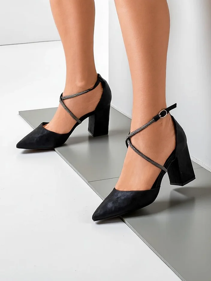 07198 Royalfashion Sieviešu ekoloģiskā zamšādā pumpi ar siksnām Eurole 12345678 Eleganti sieviešu pumpi uz blokpapēža, izgatavoti no ekoloģiskas zamšādas. Apavu iekšpuse ir oderēta ar ekoloģisku ādu, un smailā purngalis piešķir eleganci! Turklāt dekoratīvas siksnas ar rhinestones!
