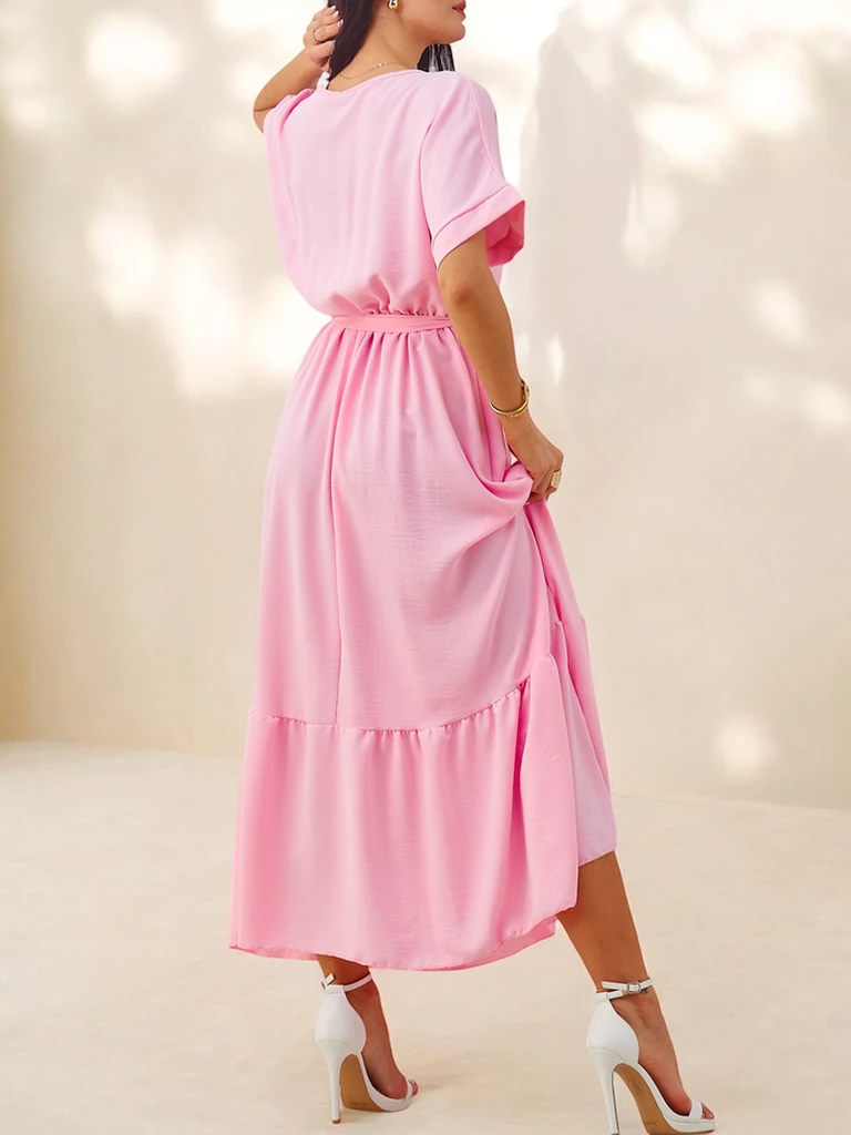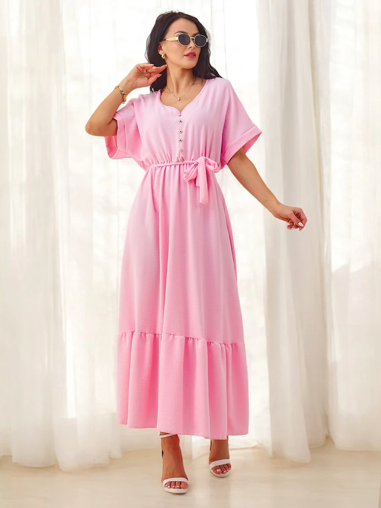 Royalfashion Sieviešu midi kleita ar īsām piedurknēm un dekoratīviem pogām