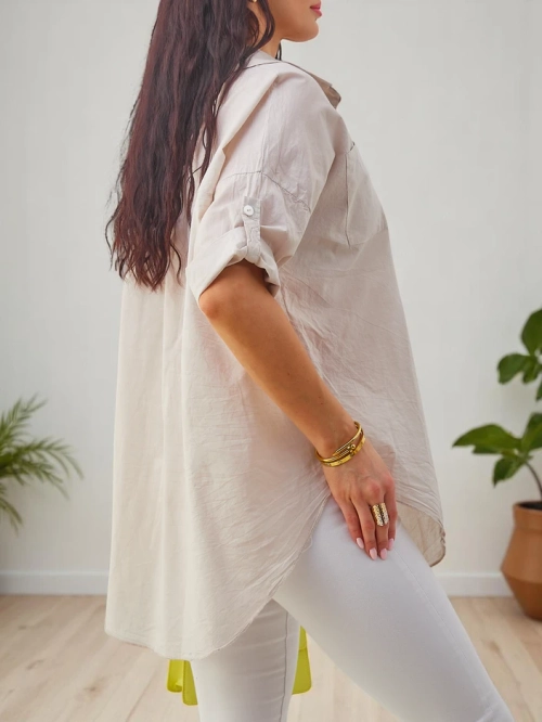 - Kokvilnas sieviešu krekls ar 3/4 piedurknēm – viegls, ērts un ideāli piemērots ikdienas valkāšanai. Eleganta vienkāršība klasiskā izpildījumā.