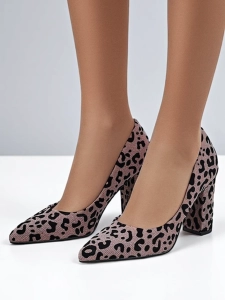 - Elegantas sieviešu kurpes uz bloka papēža, izgatavotas no auduma un zamša līdzīgas ekoloģiskas ādas. Apavu iekšpuse ir oderēta ar ekoloģisku ādu, un smailā purngala forma piešķir eleganci! Visu dizainu rotā mirdzums un leoparda raksta patterns.