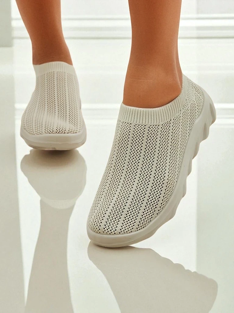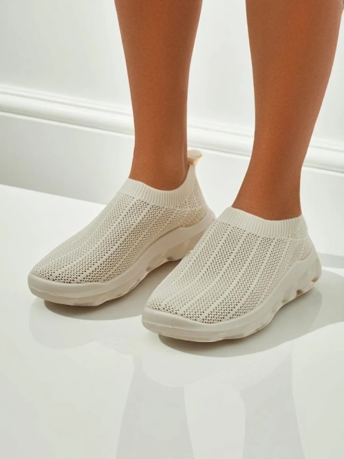 Arete Beige Women's Slip-Ons, Breathable Fabric Sneakers