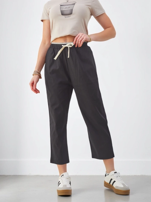 Royalfashion kokvilnas platajām sieviešu biksēm ar sasienamu jostu