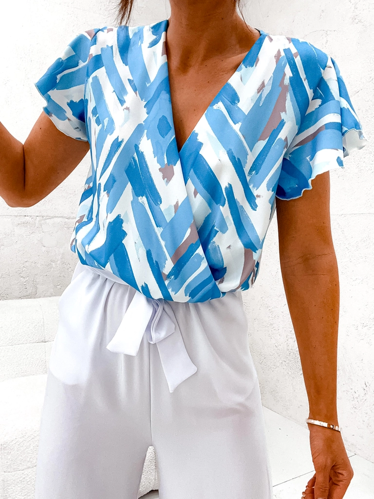 - Brīnišķīgs sieviešu kombinezons ar īsām piedurknēm, V-veida kakla izgriezumu un elastīgu jostu. Modelim ir plata, gara kāja. Papildus ir iekļauta josta. PIEZĪME: Mērījumu precizitāte (+/-) 1 cm.