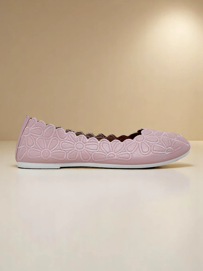 - Izcilas balerīnas, kas izgatavotas no auduma ar apaļu purngali. Augšdaļa rotāta ar smalku ziedu izšuvumu. Mīksta auduma zolīte nodrošina komfortu. Tās ir lieliski piemērotas elegantiem un modīgiem tērpiem!