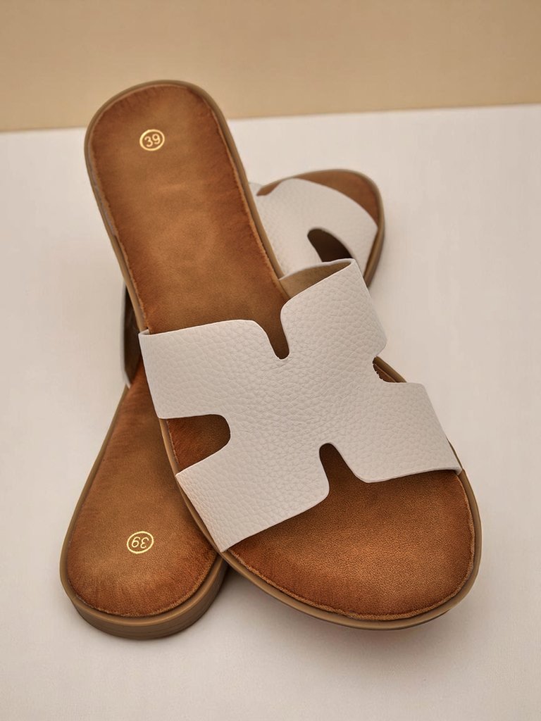 Aurelia čības ir vasaras elegances un komforta būtība. Izgatavotas no augstas kvalitātes mākslīgās ādas, tās nodrošina komfortu visu dienu. Delikāti teksturētā virsma piešķir tām smalki izsmalcinātu izskatu, bet precīzi izgrieztie elementi piešķir modernu raksturu.