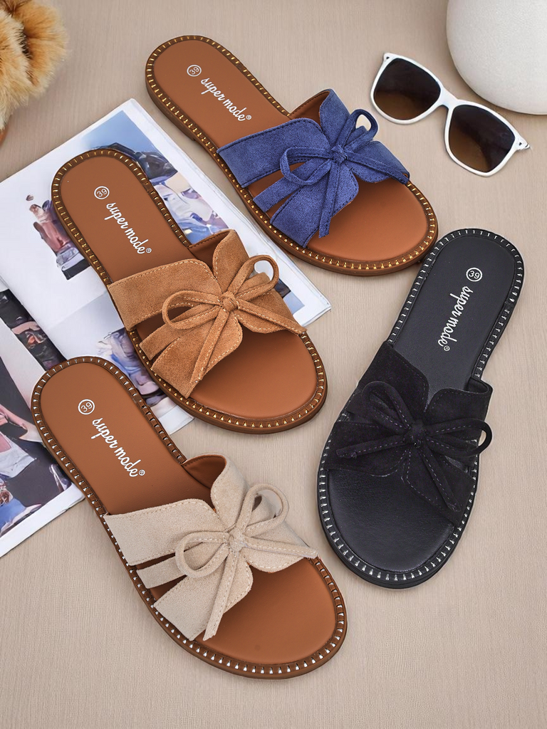 Royalfashion Sieviešu plakanā zole sandaļas ar bantīti Gerber