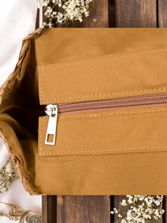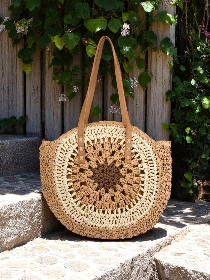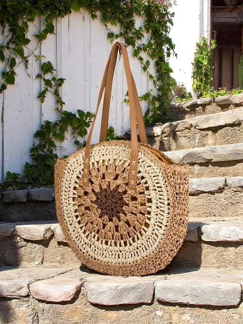 - Liela, puslodes formas salmu soma, pīta no salmiem un rotāta ar ziedu rakstu. 1 nodalījums, kabata, rāvējslēdzējs. Ideāli piemērota vasarai, pludmalei un stilīgām izklaidēm!