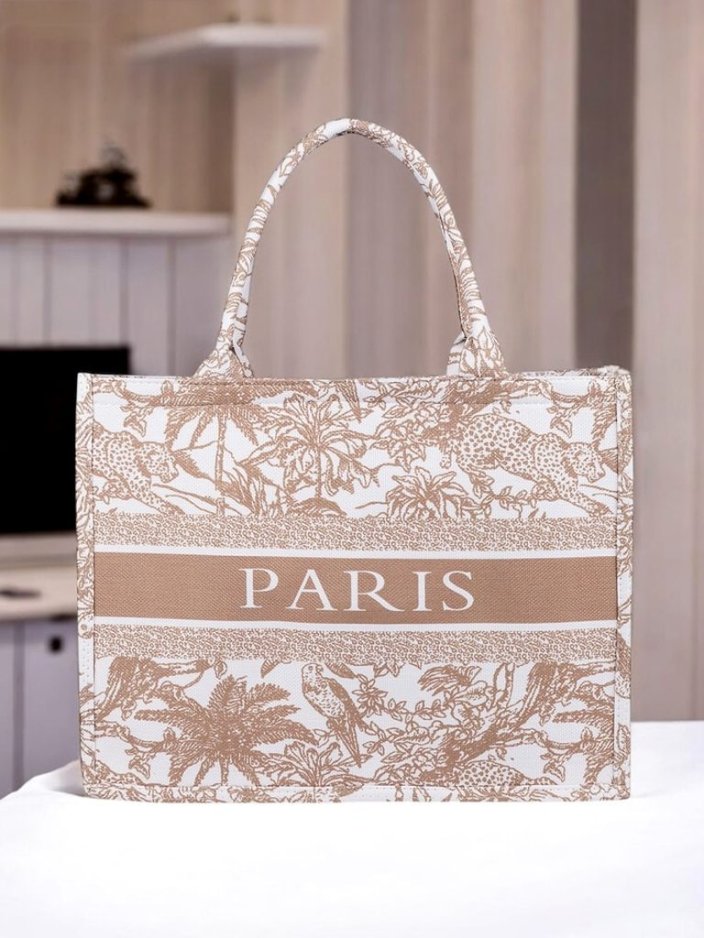• Liela, auduma sieviešu soma ar botānisku rakstu un uzrakstu "PARIS". 1 nodalījums, viegla un ietilpīga. Ideāli piemērota ikdienas lietošanai, iepirkšanās un pavasara-vasaras apģērbam!