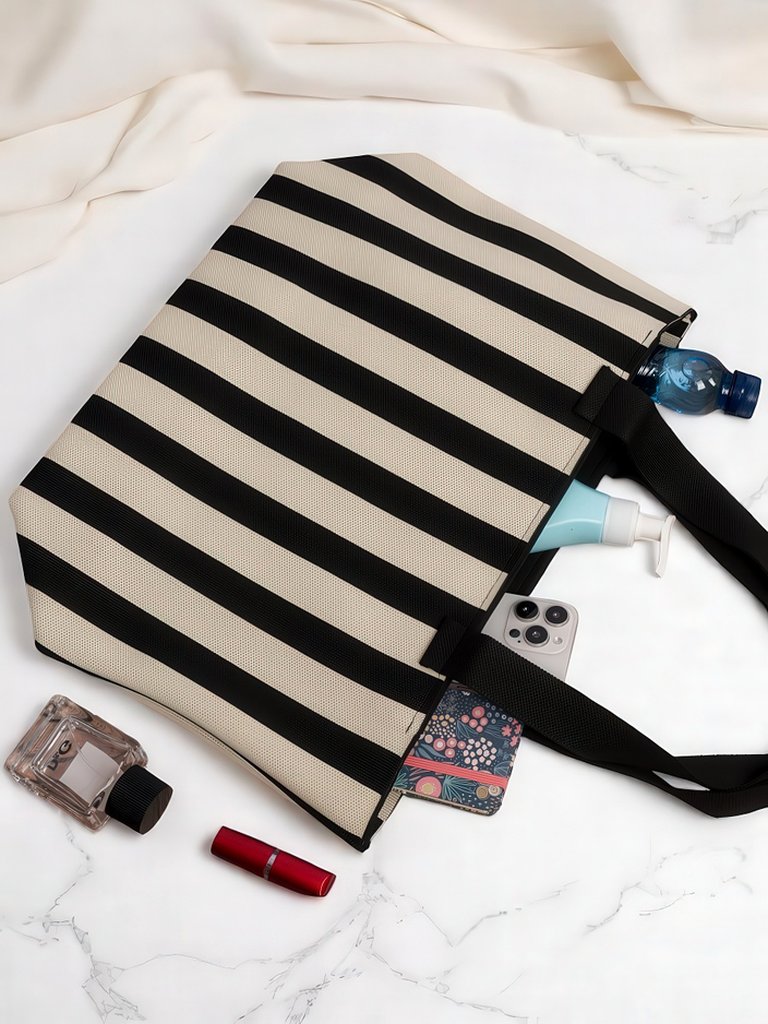 - Liela auduma sieviešu soma ar klasisku svītru rakstu. Vienā nodalījumā, aizdare ar rāvējslēdzēju. Viegli, ietilpīgi un stilīgi – lieliski piemērots iepirkšanās un ikdienas pastaigām!