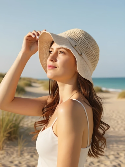 - Vieglas, auduma cepure, austas salmu stilā, dekorēta ar šarmantu bantīti. Ideāli piemērota saulainām dienām – stilīga aizsardzība un vasaras akcents jebkuram tērpam.